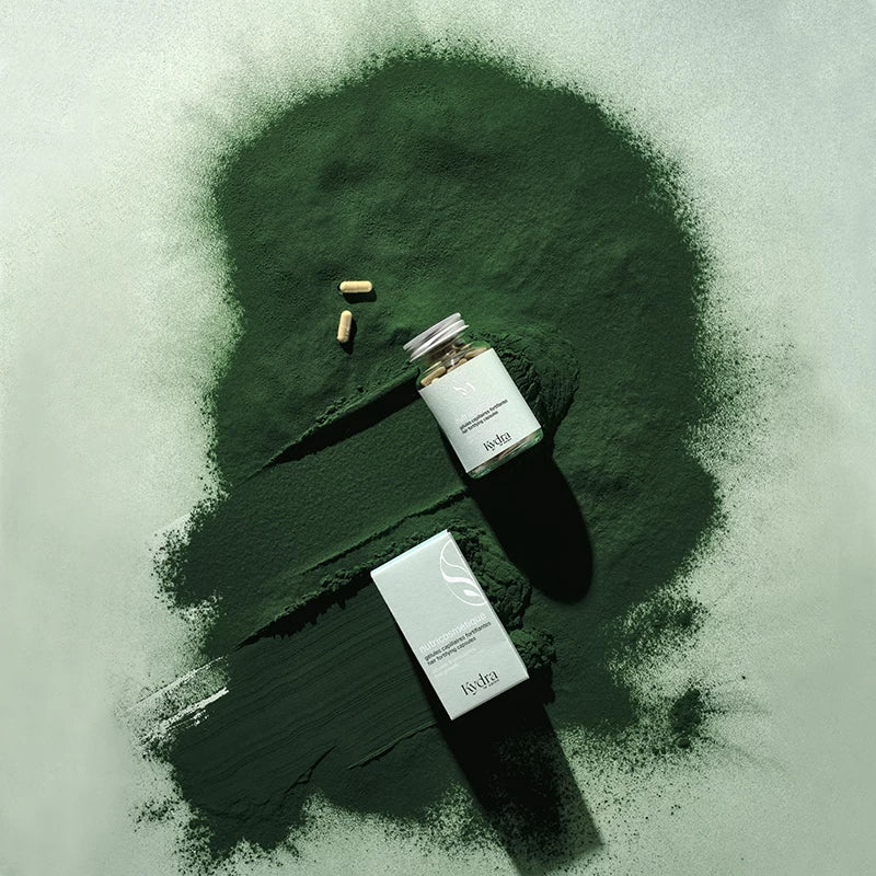 - Prehransko dopolnilo na osnovi njivske preslice, rukole, koprive, pivskega kvasa in spiruline.